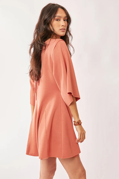 This versatile romper features a flattering swing silhouette crafted from soft, stretchy fabric that ensures all-day comfort. The design showcases elegant bell sleeves and a feminine flared cut that creates graceful movement. The coral pink shade adds a fresh, contemporary touch while the chest pocket adds practical detail. Perfect for both casual outings and dressy occasions, this romper combines style with comfort. The lightweight material and relaxed fit make it ideal for warm weather wear.