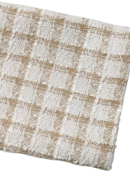 This tailored tweed outerwear with delicate pearl accents brings a refined yet playful edge to any outfit, blending timeless elegance with contemporary flair.