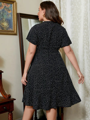 Plus Size Polka Dot Flutter Sleeve Mini Dress