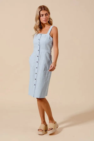 The Button Down Pocket Front Pinafore Dress is a stylish and versatile piece for your wardrobe. With a button-down front and pocket detailing, this pinafore dress offers a classic and chic look. The pinafore style is perfect for layering over tops, making it a versatile option for different seasons. Pair it with a t-shirt or blouse underneath for a cute and trendy outfit.