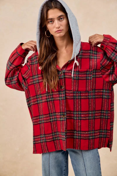 BiBi Brushed Plaid Hooded Jacket