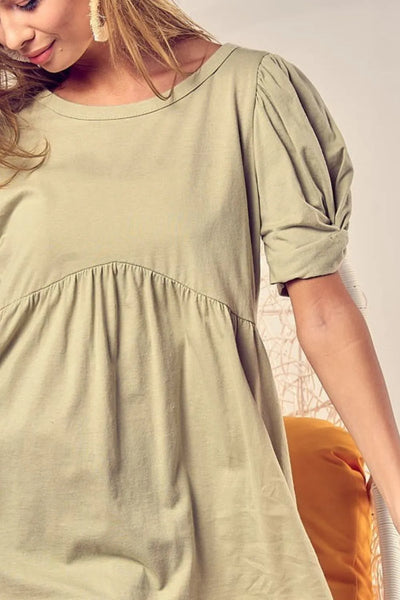 BiBi Cotton Span Knit With Puff Sleeve Baby Doll Top