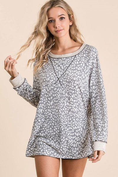 BiBi Leopard Round Neck Long Sleeve T-Shirt