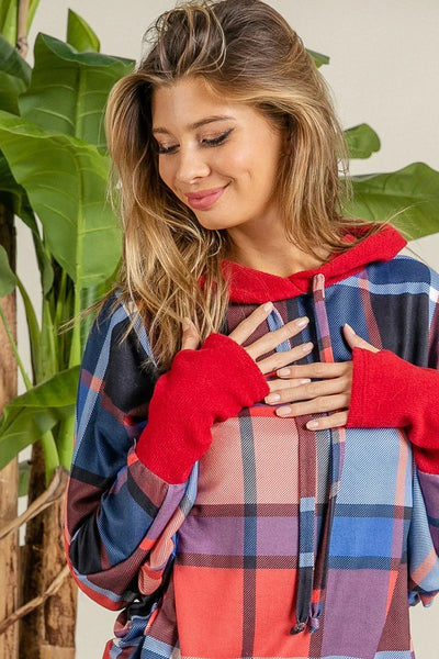 BiBi Plaid Mirr Brushed Rib Contrast Thumb Open Hoodie