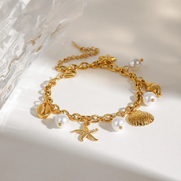- Material:Synthetic pearl,18K gold-plated,Stainless steel