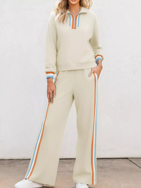 Casual Striped Quarter Zip Top and Pants Set