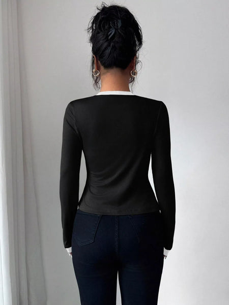 Contrast Trim Cardigan & Tank Top Set