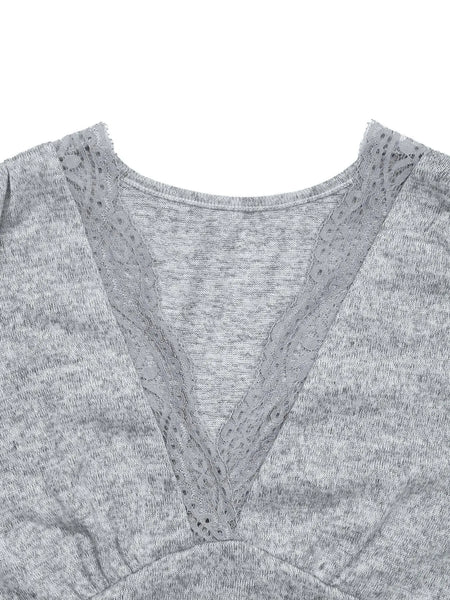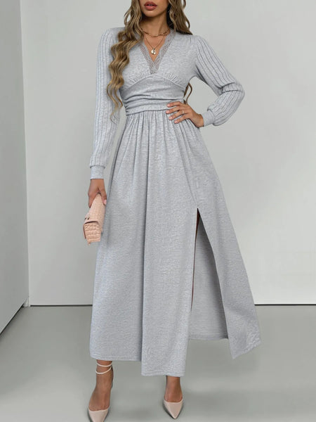 Lace Detail V-Neck Maxi Dress with Side Slit