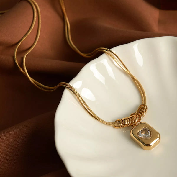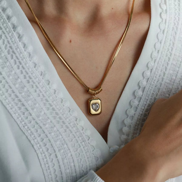 18K Gold-Plated Zircon Heart Necklace
