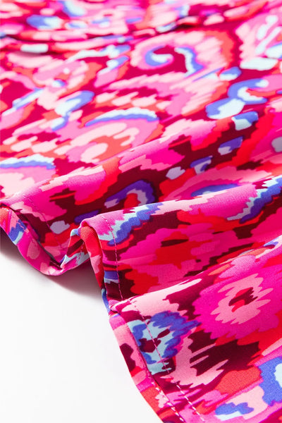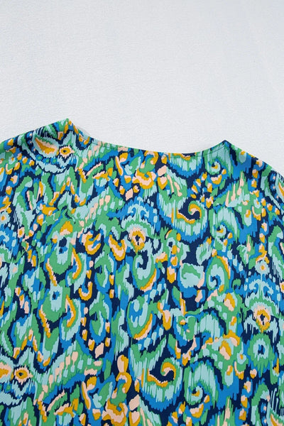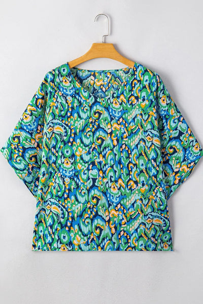 Abstract Print V Neck Half Sleeve Loose Fit Blouse