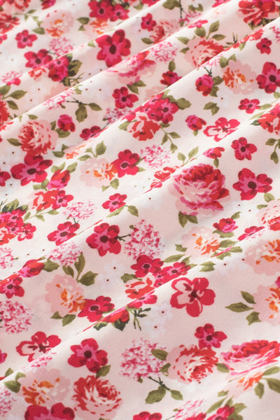 Ruffled Floral Round Neck Cap Sleeve Blouse