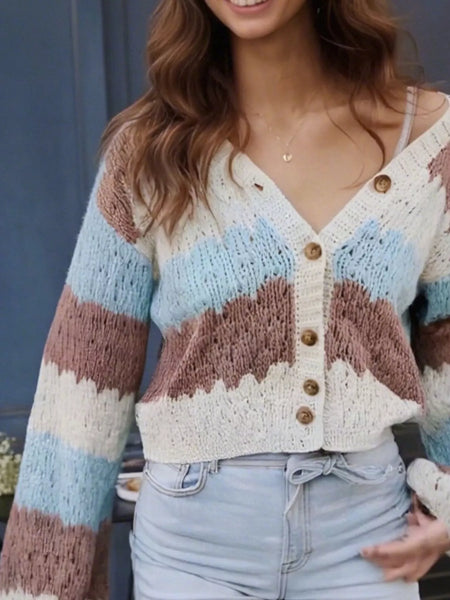 Color Block Button Up Cardigan