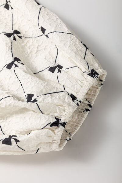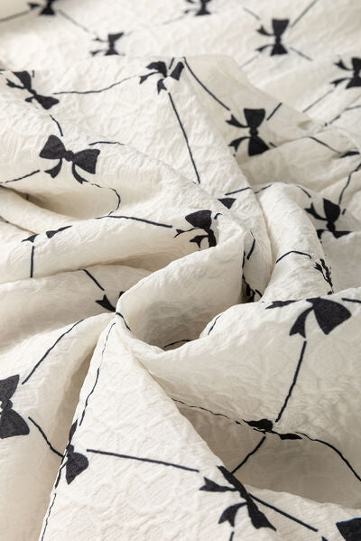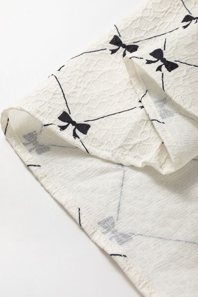 Bow Print Tie Neck Half Sleeve Dress