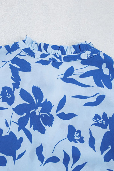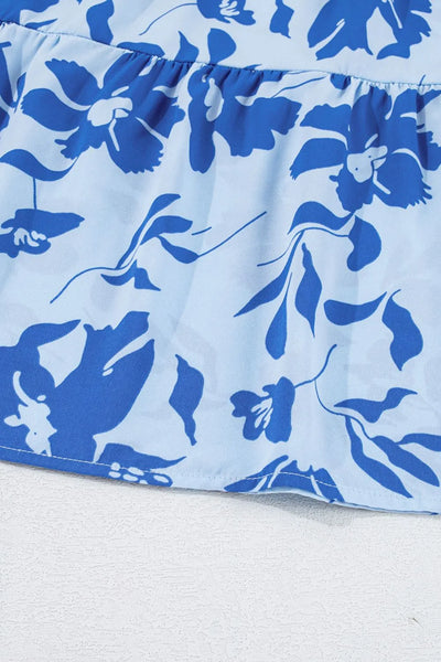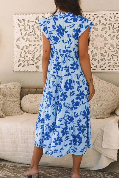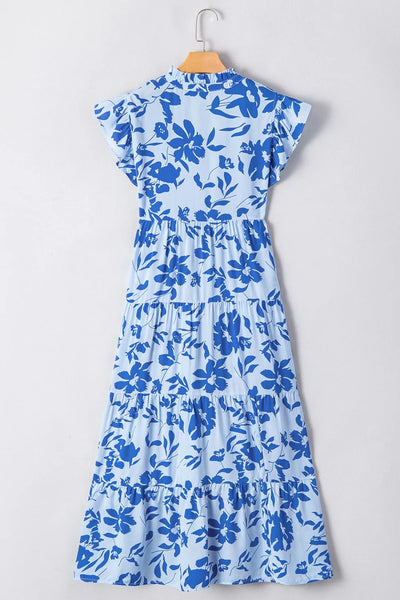 Floral Print Tiered Frilled Trim Flutter Sleeve Dress