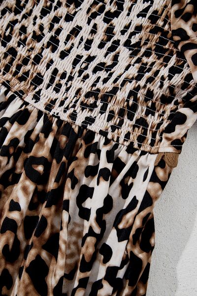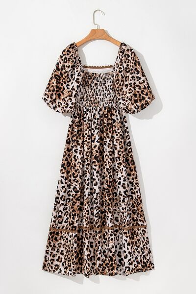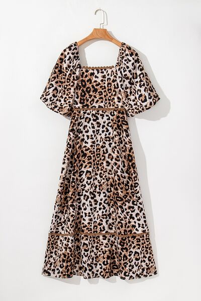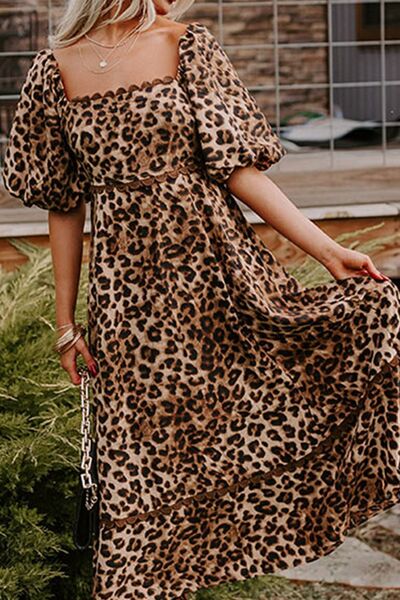 Leopard Square Neck Puff Sleeve Maxi Dress