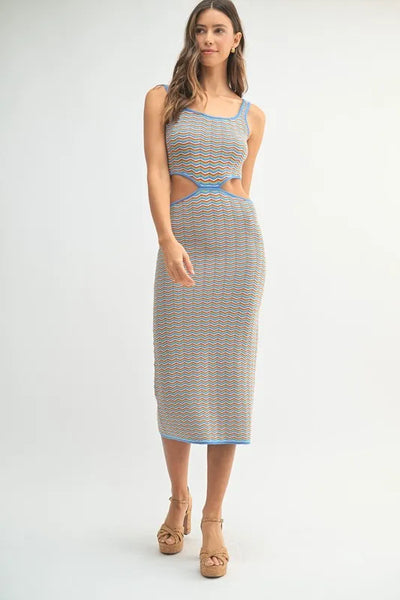 MABLE Multi Color Chevron Knit Bodycon Midi Dress