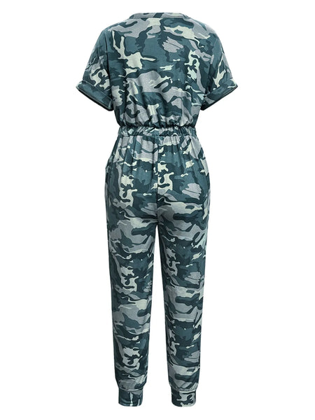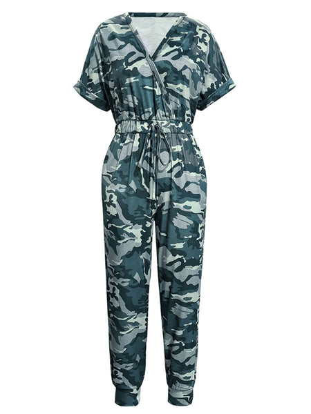 Drawstring Waist Short Sleeve Jumpsuit