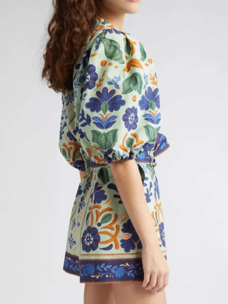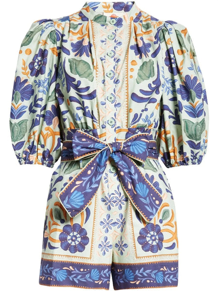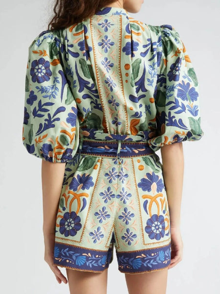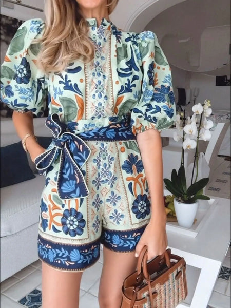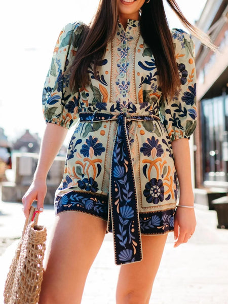 Floral Print Button Front Belted Romper
