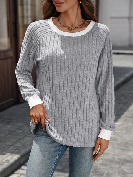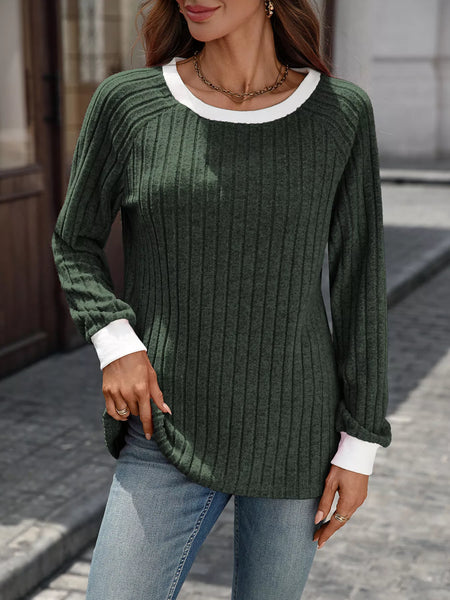 Ribbed Round Neck Raglan Sleeve Knit Top