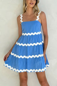Contrast Trim Square Neck Tiered Dress