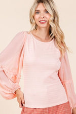 Mittoshop Mixed Media Textured Knit Chiffon Long Sleeve Top